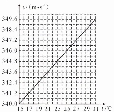 (2)物理实践活动课上,同学们利用回声测声速,测得某一障碍物距离他们173 m,经过1 s听到了回声,则此时声速为多少?请你利用声速与气温的关系图,求出当时的气温。