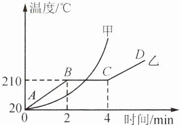 B.乙物质的熔点为210℃,熔化用时4 min