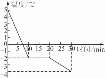 9. 小明发现水中溶解了其他物质后,会对水的凝固点产生影响。他将一些盐溶于水中得到盐水,并用烧杯盛好放入冰箱,研究盐水的凝固过程。每隔一定时间,观察盐水的状态,测出盐水的温度,并根据凝固过程记录的温度数据绘制了该盐水的凝固图像,如图所示。