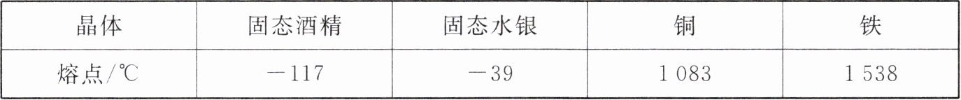 11. 根据下表中所列几种物质在标准大气压下的熔点,回答下列问题。