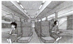 12. 如图,两列列车并排停在站台上,小强坐在车厢中向另一列车的车厢观望。突然,他觉得自己的列车开始缓缓地前进了。但是,“驶过”了旁边列车的车尾时才发现,实际上他乘坐的列车还停在站台上。小强以