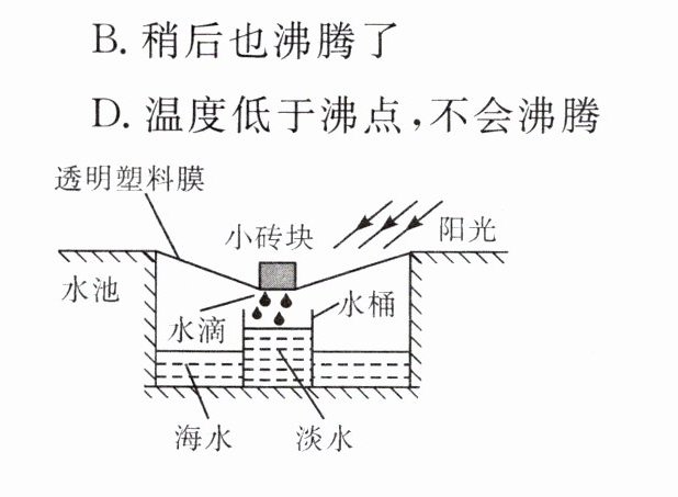 5. 小明设计的海水淡化装置如图所示,在海水淡化过程中海水先后发生的物态变化是(