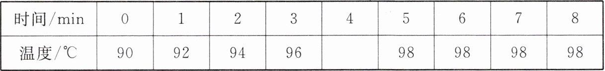 (选填“空气”或“水蒸气”)。由表中数据可知,实验中水的沸点为98