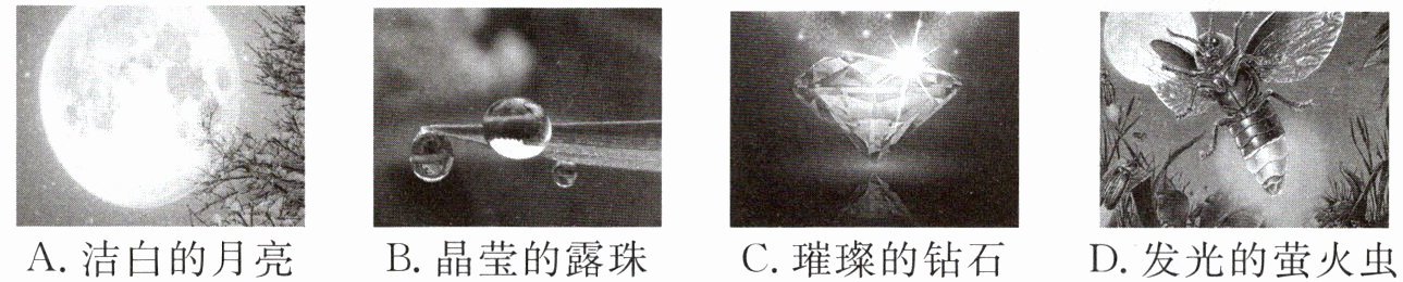 A. 洁白的月亮 B. 晶莹的露珠 C. 璀璨的钻石 D. 发光的萤火虫