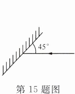 15.如图,一束光射到平面镜上,画出它的反射光线,并标明反射角的大小。