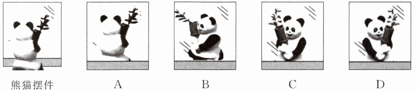 2. 如图,熊猫摆件在竖直放置的平面镜中的像是(