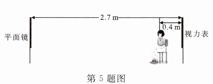 5. 如图所示,小红正在检查视力,视力表放在小红头部的后上方,她识别对面墙上镜子里的像。下列说法正确的是(