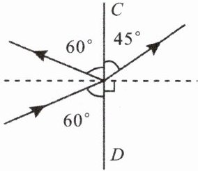 9. 如图,一束光从空气斜射到某液面上,与液面的夹角为30°,且反射光线与折射光线相互垂直,则反射角的大小为