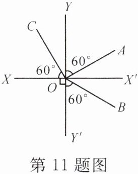 11. 空气和玻璃界面上的入射光线、反射光线和折射光线如图所示,则