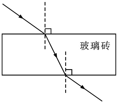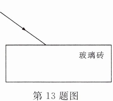 13. 如图所示,一束光线从空气中射向一块方形玻璃砖,该玻璃砖上、下表面平行。画出该光线射入玻璃砖和从玻璃砖射出时的光路图。