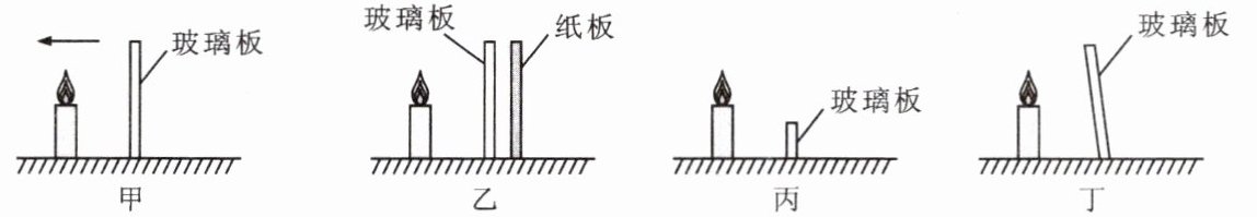 D.如图丁,若玻璃板与水平桌面不垂直,蜡烛在玻璃板中的像将会偏高且倾斜
