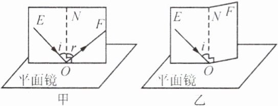 (选填“在”或“不在”)同一平面内。(2)如图甲,当纸板ENF垂直于平面镜时,使一束光贴着纸板沿某一方向射到O点,经平面镜反射,沿另一个方向射出。在入射光EO向ON靠近的过程中,发现反射光OF