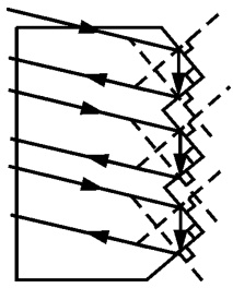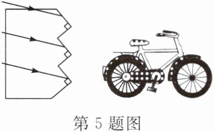 5. 自行车是一种便捷的交通工具,它包含了许多物理知识。例如,自行车尾灯就包含了光学知识。它本身不发光,但在夜晚,当有汽车灯光照射到尾灯上时,就会发生反射,以引起司机注意。尾灯的结构如图所示,请在图中画出反射光线。