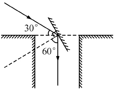 3. 如图,小刚想利用一块平面镜使此时的太阳光竖直射入井中,请你通过作光路图标出平面镜的位置和反射角的度数。