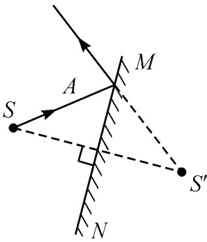 1. 如图,S'为点光源S在平面镜MN中的像,SA为光源S发出的一束光,请确定平面镜MN的位置,并完成SA的反射光路。