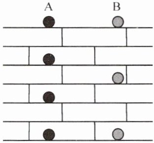 13. A、B两个小球在水中下落,水下照相机拍摄到的两个小球经过某区域时的频闪照片如图所示。已知水池壁上每块瓷砖的高度相等,闪光灯每隔0.1 s闪亮一次(即拍摄一次)。由图可知,A小球做