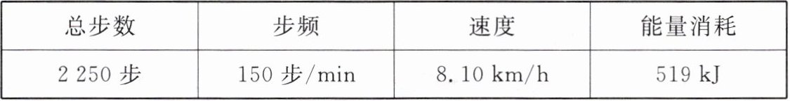 | 2250步 | 150步/min | 8.10 km/h | 519 kJ |