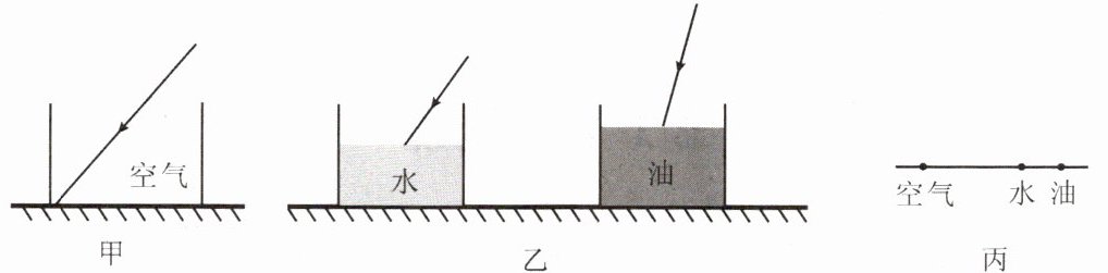 (3)某小组同学根据修改后正确的实验方案做实验后,所记录的三次光斑的相对位置如图丙所示,经分析可知:光从空气斜射入水和油中时,