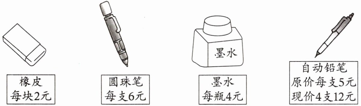 ) ①1 支圆珠笔比 1 支自动铅笔的现价贵的钱数。