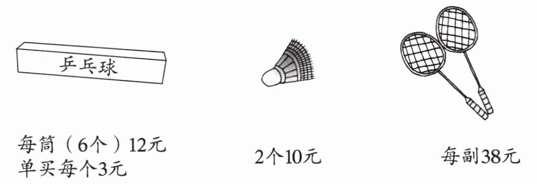 (1)1 副羽毛球拍比 1 个羽毛球贵多少元?