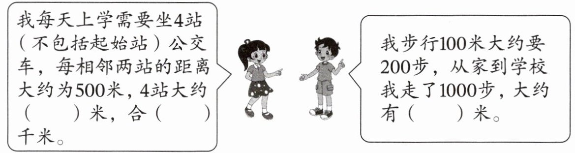 )千米。我步行100米大约要200步,从家到学校我走了1000步,大约有(