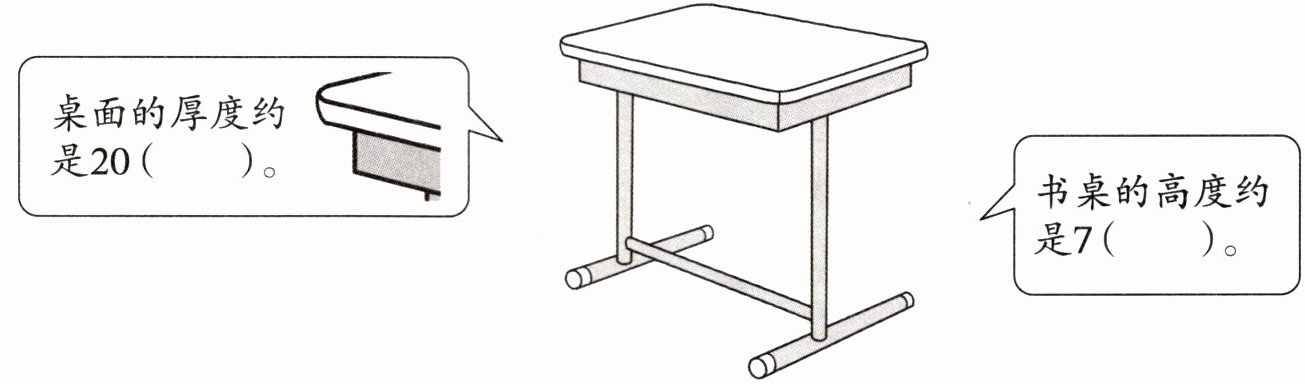 1. 爸爸给小明买了一张新书桌,尺寸如下。在( )里填上适当的长度单位。