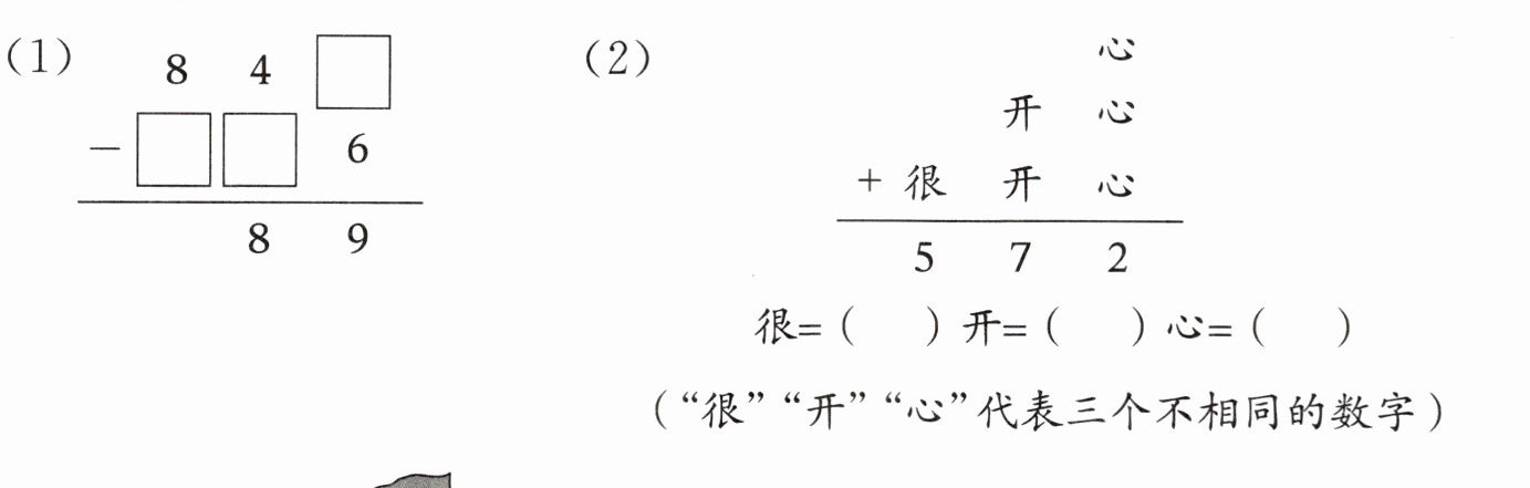 5. (数学游戏)把下面的竖式补充完整,使竖式成立。