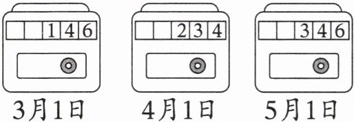 4. 下面分别是小华家 3 月 1 日、4 月 1 日、5 月 1 日的电表读数(单位:千瓦时)。小华家 4 月的用电量是多少千瓦时?