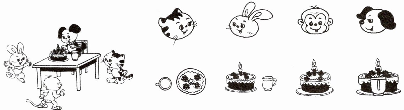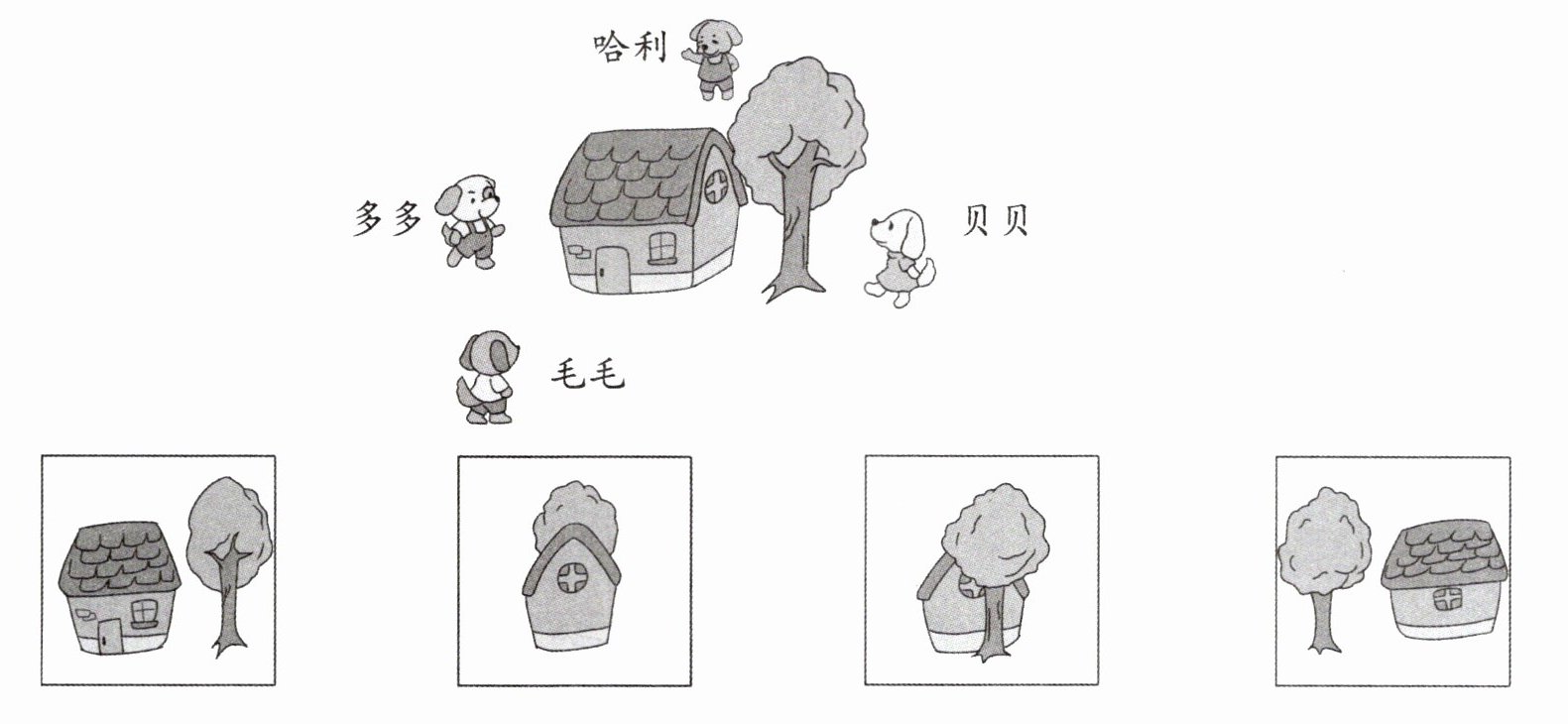 4. 下面四幅图分别是谁看到的?把名字写在( )里。