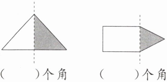 8. (数学游戏) 做一做,填一填,分别剪去下面图形中的阴影部分,各剩几个角?