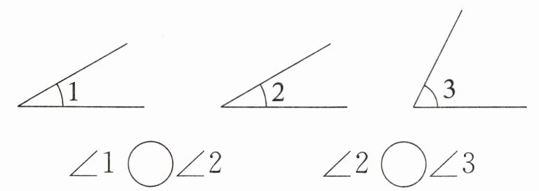 3. 借助三角板比一比,在$◯$里填上“$>$”“$<$”或“$=$”。