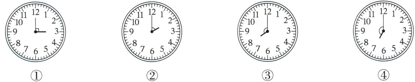 5. 下图钟面上分针和时针所成的角,请你按从大到小的顺序排列。