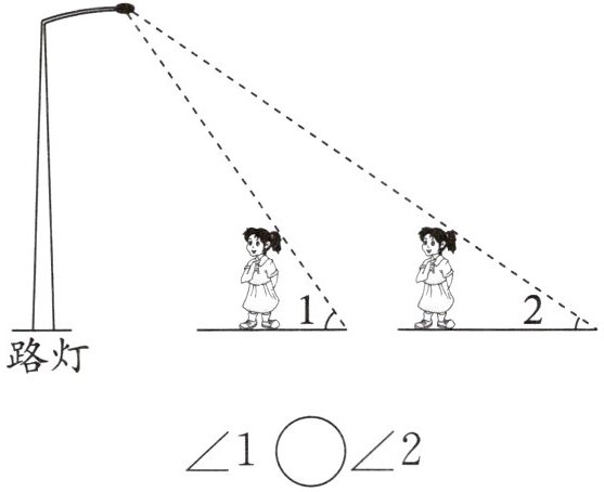 $\angle 2$我发现离路灯越近题图中所成的角越大。(答案不唯一)