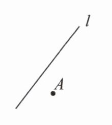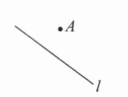 (1) 从点$A$向直线$l$做垂线,使用直角三角板,一条直角边与直线$l$重合,另一条直角边过点$A$,从$A$沿直角边画出垂线,标记垂足,形成直角符号。