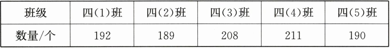 |数量/个|192|189|208|211|190|