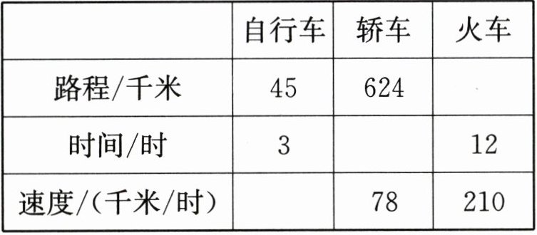 | 速度/(千米/时) | 15 | 78 | 210 |