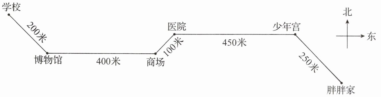 (1)她从西直门出发先 向南坐3站,再向东坐2站。