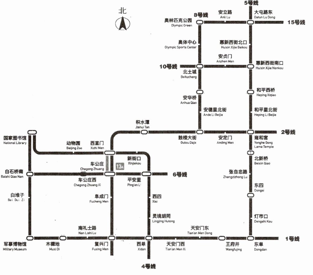 (2)小明从和平里北街出发,想去奥林匹克公园和北京冬奥会吉祥物冰墩墩合影,请你帮他规划一下乘车路线吧。