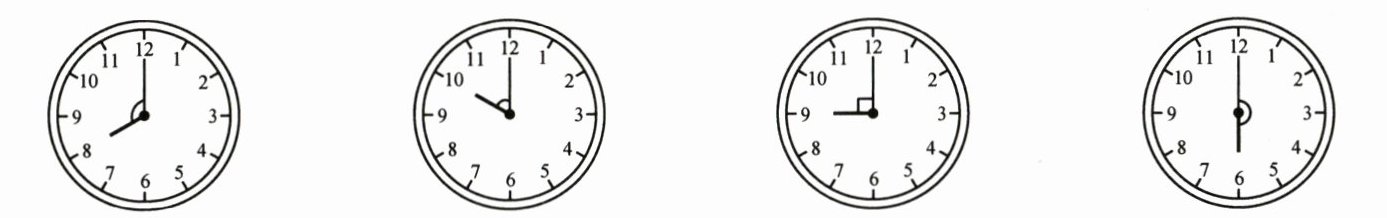 3. 写出每个钟面上时针与分针所形成的角的名称。(8 分)