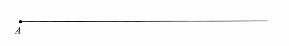 1. 从下面射线的端点 $A$ 开始,截取一条 3 厘米长的线段 $AB$。再以点 $A$ 为顶点画一个 $65^{\circ}$ 的角。(2 分)