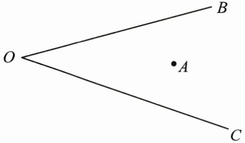 2. 过点 $A$ 分别画出射线 $OB$ 的垂线和射线 $OC$ 的平行线。(2 分)