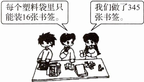 (2)345÷16=21(个)……9(张) 最少需要22个塑料袋