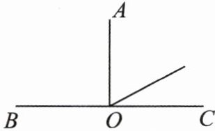 2. 右图中射线 $OA$ 垂直于射线 $OB$,同时垂直于射线 $OC$。如果不算比平角大的角,右图中有(