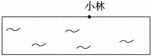 在图中沿小林所在的点到对面端点画一条垂直线段,此线段即为小林游泳的最短路线。
