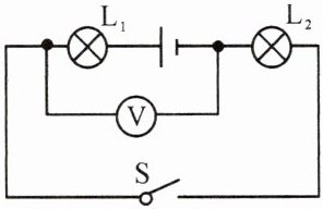 5. 如图电路中,闭合开关,电压表$V_1$的示数是7.5 V,电压表$V_2$的示数为9 V,若电源电压为12 V,则$L_2$两端电压是( )。