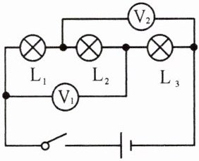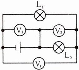 6. 如图,$L_1和L_2$均正常发光。下列各组数据分别表示某时刻电压表$V_1$、$V_2和V_3$的示数,其中可能正确的一组是( )。