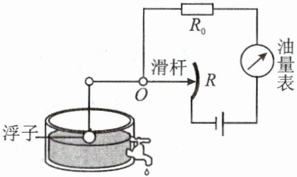 8. 如图,有一种测定油箱内油量多少的装置,其中滑动变阻器的金属滑片是杠杆的一端,从油量表(由电流表改装而成)指针所指的刻度,就能知道油箱内油量的多少,则( )。