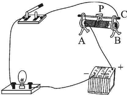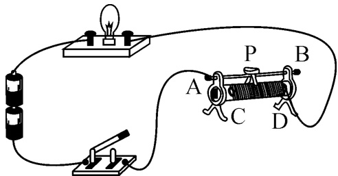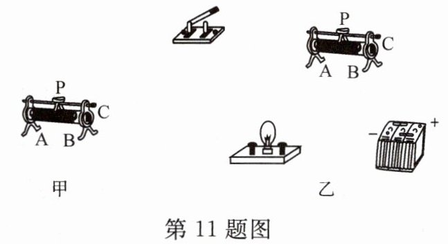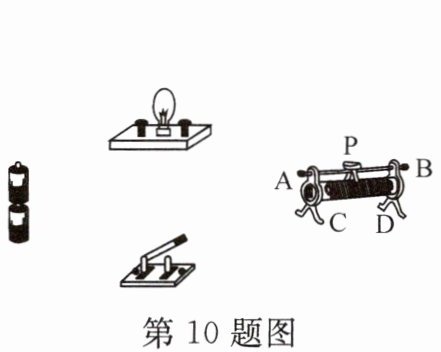 10. 按要求连接电路。要求:能利用滑动变阻器来改变灯泡的亮度,且当滑片P向右移动时灯会变亮,在图中画出电路的连接方法。如果一个同学在连接好电路后,闭合开关,发现无论怎样移动滑片P,都不能改变灯的亮度,你觉得可能的原因是______。