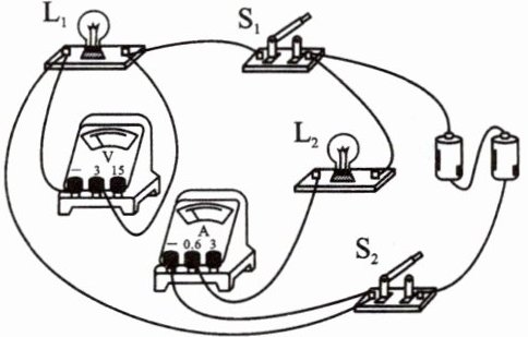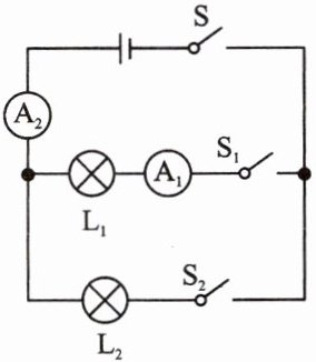 2. 如图所示的电路中,闭合开关$S_1、$$S_2,$小灯泡$L_1$和$L_2$均正常发光,电流表和电压表均有示数。下列关于电路的分析正确的是( )。