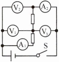 7. 在如图所示的电路中,电压表$V_1$、$V_2$、$V_3的示数分别为U_1$、$U_2$、$U_3$,电流表$A_1$、$A_2的示数分别为I_1$、$I_2$,那么下列关系正确的是( )。